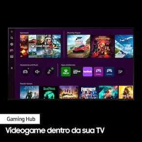 A nova plataforma de games dentro da TV garante acesso a mais de 1000 jogos nas plataformas Xbox Game Pass e Nvidia GeForce Now, sem necessidade de downloads ou de consoles, além de recomendar conteúdos,transmissão de lives via Twitch e agrupar tudo sobre jogos em uma só interface, surpreenda os seus adversários dominando a partida em uma TV que proporciona mais fluidez a cada cena.