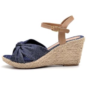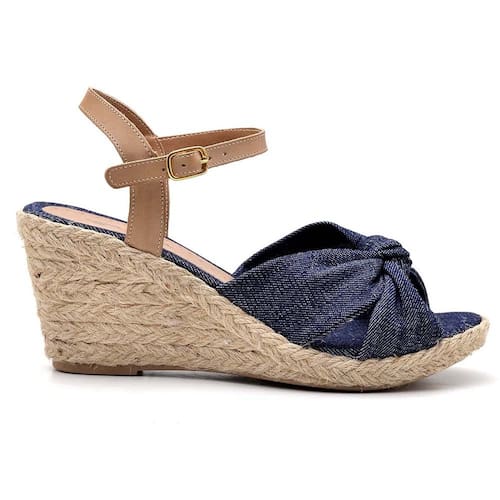 CARACTERÍSTICAS - Modelo: Sandália Anabela Couro - Gênero: Feminino - Cabedal: Couro atanado, detalhe em nó - Solado: Tipo anabela de material PU, extremamente leve, encapado com corda natural - Altura do salto: 7.0 a 9.0 cm - Palmilha: Espuma com forro em PU - Enfeite: Fivela dourada