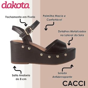 A Sandália Anabela Dakota é a combinação perfeita entre conforto, estilo e modernidade. Criada para mulheres que adoram se sentir elegantes sem abrir mão da praticidade, ela traz um design encantador e versátil, ideal para o dia a dia ou momentos especiais. Seu salto anabela de 8 cm garante a altura perfeita, proporcionando estabilidade e equilíbrio em cada passo, além de um visual que alonga a silhueta com muito charme.