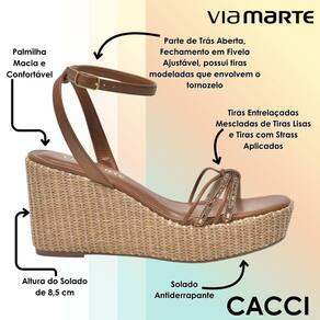 Essa sandália Via Marte foi criada para quem busca estilo e praticidade no dia a dia. Seu design conta com tiras entrelaçadas que combinam tiras lisas e tiras com strass aplicado, trazendo um toque de sofisticação e brilho. O fechamento é feito em fivela ajustável que envolve delicadamente o tornozelo, garantindo um encaixe seguro e personalizado. A palmilha macia proporciona conforto extra em cada passo, ideal para longos períodos de uso. O solado de oito centímetros e meio em formato anabela possui acabamento que remete ao trançado artesanal e ainda conta com base antiderrapante que garante firmeza na caminhada. Uma peça versátil que combina com vestidos, saias, shorts ou calças, perfeita para passeios, encontros ou ocasiões especiais em que você deseja unir elegância e conforto em um só calçado.