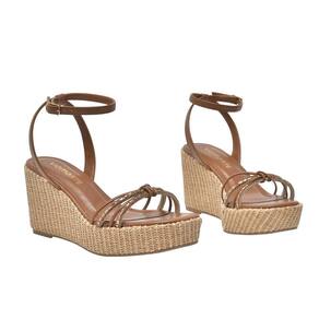 Sandália Anabela Feminina Tiras Entrelaçadas Macio Via Marte - 39 - Marrom