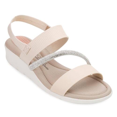 Nome: Sandália Anabela Modare MD24-71901. Gênero: Feminino. Indicado para: Dia a dia. Estilo da Peça: Moda casual. Material Externo: Alternativo. Material Interno: Alternativo. Ajuste: Tira elástica. Detalhe: Tira com aplicações de strass. Palmilha: Anatômica com tecnologia Ultra Conforto. Tipo de Salto: Anabela. Altura do Salto: Baixo 4 cm. Solado: Em borracha antiderrapante. Peso do Produto: 540 g (o peso varia de acordo com a numeração). Garantia do Fabricante: Contra defeito de fabricação. Origem: Nacional. Código Produto: 02430554. Marca: Modare.