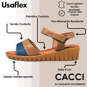 Desenvolvida pela renomada marca Usaflex, esta sandália é cuidadosamente projetada para proporcionar conforto incomparável durante todo o dia. Cada passo será suave e sem esforço.