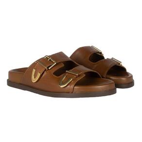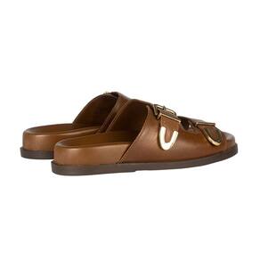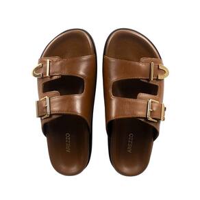 Sandália Arezzo Papete Flat Form Detalhe Metal - 37 - Marrom Cacau