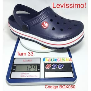 Machucados nos dedinhos e pezinhos de seu príncipe ou princesa ? Não com as babuches ! Ao contrário dos chinelos e sandálias tradicionais seu formato aumenta muito a proteção contra tropeções e pisadas ! Mesmo sendo fechada seus furos garantem a ventilação deixando os pezinhos sempre fresquinhos contribuindo para diminuir o odor. Com uma tira no calcanhar pode ser usada como chinelo ou sandália dependendo do gosto da criança. Esta sandália babuche com uma faixa lateral na sola é super macia, confortável e levíssima, o tamanho 33 pesa apenas 129 g cada um ( compare com os outros ! ). Fácil de limpar, não deixa marcas no chão ( non-marking ) e como é muito leve flutua na agua ! As babuches conquistaram as pessoas de todas as idades ! Esta ainda tem excelente custo-benefício ! ATENÇÃO: FORMA GRANDE, consulte a tabela de medidas na foto. Material: goma eva.