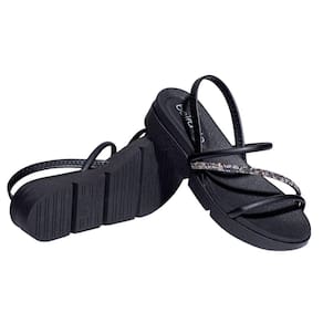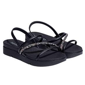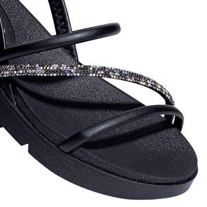 Sandália Beira Rio Plataforma Sola Baixa Strass Feminina Preta 336635