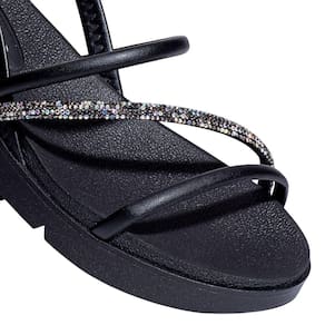 Sandália Beira Rio Plataforma Sola Baixa Strass Feminina Preta 336635