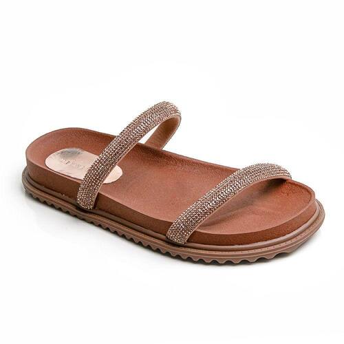 Conforto Sob Seus Pés: Feita com material micro de alta qualidade, esta sandália oferece uma sensação suave ao toque, garantindo conforto durante todo o dia. As duas tiras adornadas com strass adicionam um toque de sofisticação, enquanto a sola de 1,5 cm e a palminha de 2,0 cm proporcionam apoio extra aos seus pés.