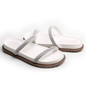 Conforto Sob Seus Pés: Feita com material micro de alta qualidade, esta sandália oferece uma sensação suave ao toque, garantindo conforto durante todo o dia. As duas tiras adornadas com strass adicionam um toque de sofisticação, enquanto a sola de 1,5 cm e a palminha de 2,0 cm proporcionam apoio extra aos seus pés.