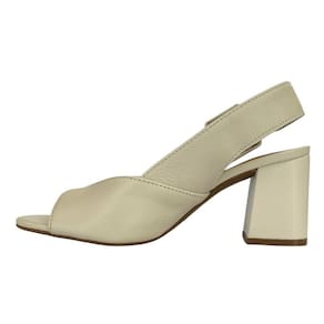 A Sandália Bottero em couro burnish na cor Off White, conta com salto bloco alto de 7,5 cm, o modelo traz equilíbrio entre elegância e estabilidade. Possui design minimalista e sofisticado, com gáspea inteira e recortes estratégicos que revelam parcialmente o peito do pé e os dedos, proporcionando leveza visual. O calcanhar é aberto e conta com tira ajustável com detalhe em elástico e fivela encapada da mesma cor, garantindo ajuste preciso e conforto ao caminhar, além de calce facilitado, para maior praticidade. Confeccionada em couro macio de alta qualidade, a sandália se adapta naturalmente ao formato dos pés, oferecendo bem-estar mesmo em longos períodos de uso. Atemporal e versátil, transita com facilidade entre o casual e o formal, sendo uma escolha elegante para diversas ocasiões e estilos.