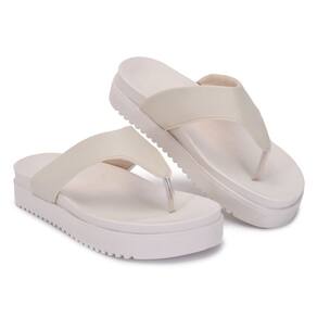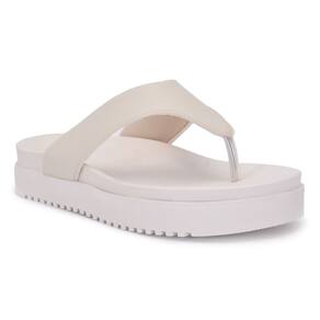 Sandália chinelo Papete de Dedo strass Off White Moda Verão - Bege - 36