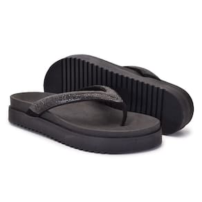 Sandália chinelo Preto Papete Calce Fácil Brilho Strass Moda - Preto - 40