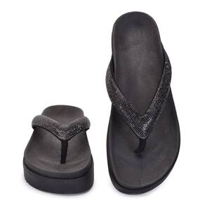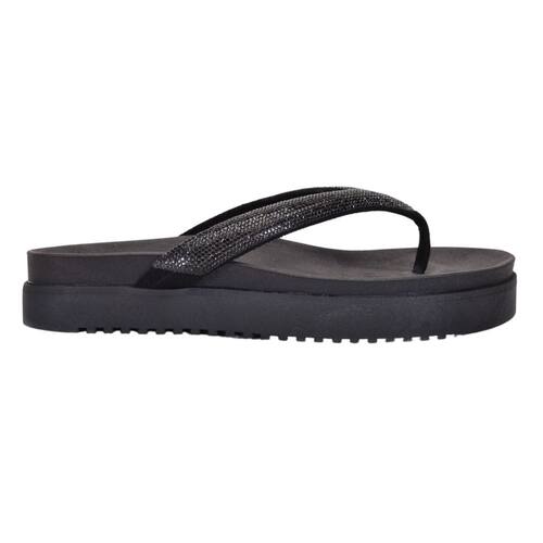 Sandália chinelo Preto Papete Calce Fácil Brilho Strass Moda - 36 - Preto