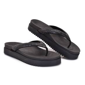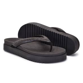 Sandália chinelo Preto Papete Calce Fácil Brilho Strass Moda - 35 - Preto
