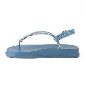A sandália Dakota Flatform com Brilhos se apresenta como uma opção dinâmica e contemporânea para os dias de verão. Com uma sola plana de 3,00 cm, que harmoniza conforto e um design limpo, este calçado destaca-se pelas tiras finas adornadas com brilhos. O fechamento por cincola na tira que envolve o calcanhar proporciona um ajuste seguro e personalizado.