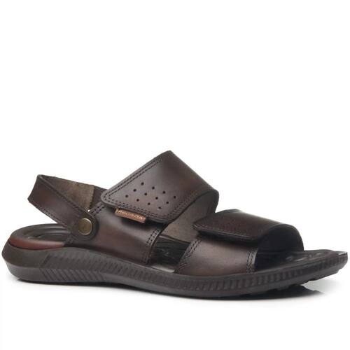 Sandália Masculina Pegada Essa sandália é fabricada em couro, matéria prima de alta qualidade, resistência e durabilidade. O solado é leve e flexível, e conta ainda com o sistema de amortecimento AMORTECH, através de tubos que absorvem o impacto na região do calcanhar. A palmilha é anatômica feita em eva que se adapta ao formato do pé com massageadores triangulares. O modelo ainda possui tiras em tiras autocolantes ajustáveis que facilitam o ajuste no pé.
