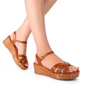 Com um design que nunca sai de moda, esta sandália apresenta um imponente salto anabela de 5,5 cm, inteiramente revestido com um material tramado que remete à elegância natural do estilo espadrille. A tira única e larga sobre o pé valoriza o visual, enquanto a cor caramelo, um clássico absoluto, garante combinações fáceis e sofisticadas.