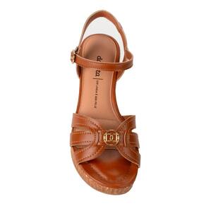 Com um design que nunca sai de moda, esta sandália apresenta um imponente salto anabela de 5,5 cm, inteiramente revestido com um material tramado que remete à elegância natural do estilo espadrille. A tira única e larga sobre o pé valoriza o visual, enquanto a cor caramelo, um clássico absoluto, garante combinações fáceis e sofisticadas.