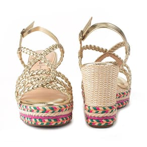 Sandália Dakota Salto Anabela Alto Feminina Metalizada Tressê Dourado 333767