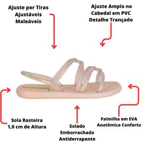 As tiras finas e entrelaçadas ganham texturas de alta definição que trazem o brilho, detalhamento que garante charme e a sofisticação nos detalhes. A sola, com contornos arredondados e bico levemente quadrado, traz novidade e muito conforto. O calce fácil garante praticidade no dia a dia.