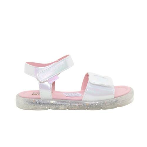 Sandália de led infantil em sintético branco, com recortes de corações holográficos, super fofa e moderna! Estilo papete com palmilha Feet Care que possui um sistema avançado de fofura, com a densidade ideal para os pés, minimizando impactos.É fácil de calçar! Com solado emborrachado transparente com glitter e luzes de led coloridas que as meninas amam! Led do solado com cores fortes e brilho intenso! Solado leve, flexível e antiderrapante que garante mais segurança durante as brincadeiras.