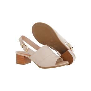 Sandalia De Salto Baixo Em Couro Nude - 39 - Bege