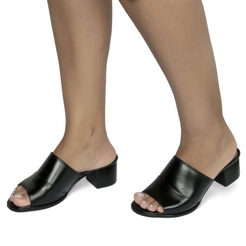 Sandalia De Salto Baixo Em Couro Preto - 35 - Preto
