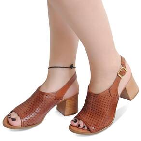 Sandalia De Salto Em Couro Conhaque - 35 - Marrom