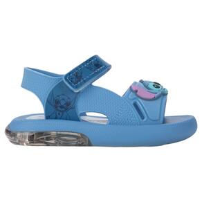 Com design moderno a sandália Disney Led traz um dos personagens mais comentados do momento: Stitch. Além do solado e as tiras estampadas, a sandália também conta com um aplique na parte superior dando mais destaque ao personagem. O grande diferencial fica por conta das luzes led multicoloridas que piscam, localizadas na parte traseira da sola. O fechamento é em fita dupla aderente, permitindo um calce fácil e seguro.
