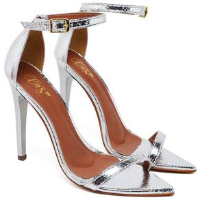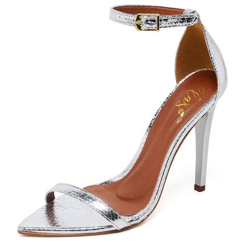 Sandália Ellas Online Salto Alto Bico Folha Cristal Prata - 33 - Prata