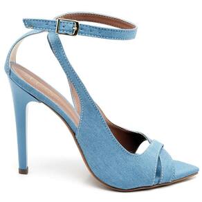Sandália Ellas Online Salto Alto Bico Folha Jeans Delave - 40 - Azul Bebê