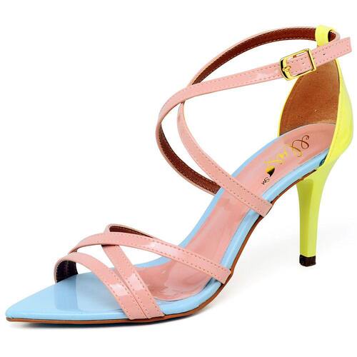 Sandália Ellas Online Salto Médio Bico Folha Verniz Rosa/Azul/Siciliano - 33 - Multicolor