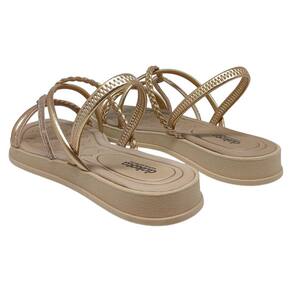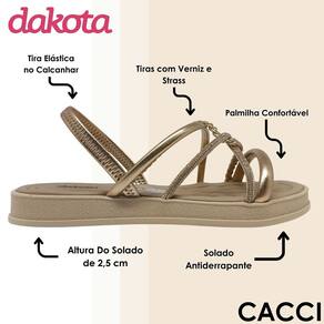 Essa sandália Dakota foi criada para quem busca um calçado versátil que una elegância, conforto e praticidade em todos os momentos. Seu design é composto por tiras modernas que misturam o acabamento em verniz com aplicação de strass, garantindo brilho, sofisticação e um charme especial em qualquer produção, além de uma tira trançada que valoriza ainda mais o visual. O modelo conta com tira elástica no calcanhar que facilita o calce e oferece ajuste firme e confortável ao pé, proporcionando segurança e liberdade de movimento durante todo o uso. Para maior bem-estar, a palmilha é confortável e macia, permitindo caminhar longas horas sem abrir mão do aconchego. O solado flatform de 2,5 centímetros de altura traz um toque de modernidade e ainda proporciona uma leve elevação, enquanto sua base antiderrapante garante firmeza e estabilidade em diferentes tipos de solo. Ideal para acompanhar desde combinações leves com shorts e vestidos até looks mais elaborados, essa sandália é a opção perfeita para trazer estilo, comodidade e confiança em qualquer ocasião do dia a dia.