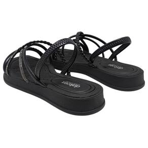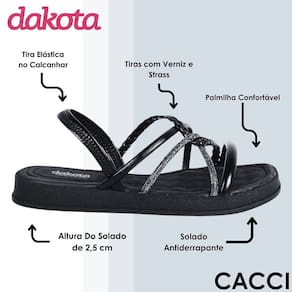 Essa sandália Dakota foi criada para quem busca um calçado versátil que una elegância, conforto e praticidade em todos os momentos. Seu design é composto por tiras modernas que misturam o acabamento em verniz com aplicação de strass, garantindo brilho, sofisticação e um charme especial em qualquer produção, além de uma tira trançada que valoriza ainda mais o visual. O modelo conta com tira elástica no calcanhar que facilita o calce e oferece ajuste firme e confortável ao pé, proporcionando segurança e liberdade de movimento durante todo o uso. Para maior bem-estar, a palmilha é confortável e macia, permitindo caminhar longas horas sem abrir mão do aconchego. O solado flatform de 2,5 centímetros de altura traz um toque de modernidade e ainda proporciona uma leve elevação, enquanto sua base antiderrapante garante firmeza e estabilidade em diferentes tipos de solo. Ideal para acompanhar desde combinações leves com shorts e vestidos até looks mais elaborados, essa sandália é a opção perfeita para trazer estilo, comodidade e confiança em qualquer ocasião do dia a dia.