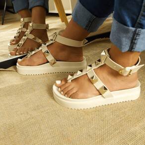 Sandália Fashion Feminina com Fivela Ajustável Ecológico Elegância Garantida - 36 - Bege