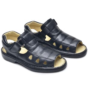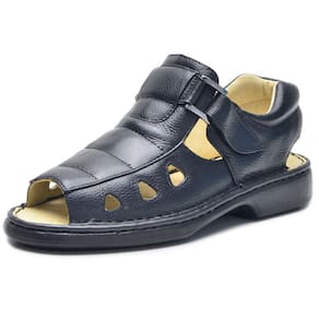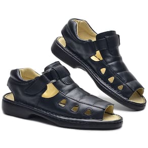 Sandalia Fechada Confort Masculina Couro Solado Borracha - 40 - Preto