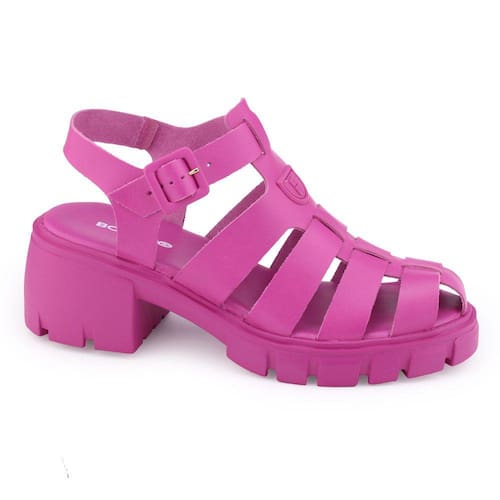 Solado: 5,5cm de altura traseiro e 2cm de altura frontal, solado com frisos para maior segurança.