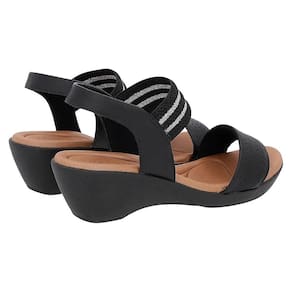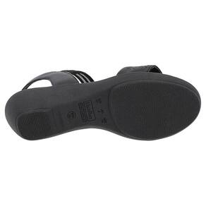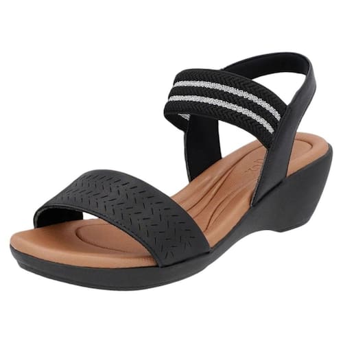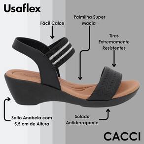 Estabilidade garantida: Salto anabela de 5,5 cm de altura e o solado antiderrapante, que oferece segurança e equilíbrio ao caminhar.