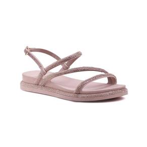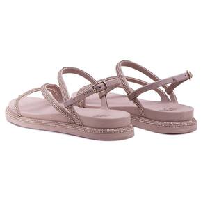 Sandália Feminina Ajuste Fivela Strass Confortável Moderna - 35 - Bege
