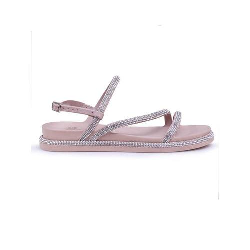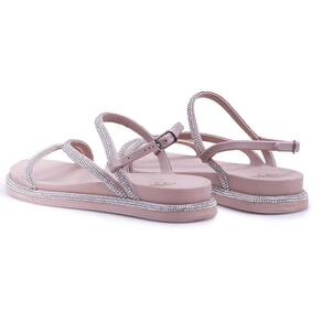 Sandália Feminina Ajuste Fivela Strass Confortável Moderna - 40 - Bege Claro