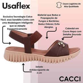 O solado leve e antiderrapante de três centímetros proporciona excelente estabilidade e absorção de impacto, acompanhando bem o ritmo das suas atividades. A sandália Usaflex combina beleza e funcionalidade, sendo perfeita para momentos de lazer, trabalho ou passeios, entregando o equilíbrio ideal entre estilo e conforto.