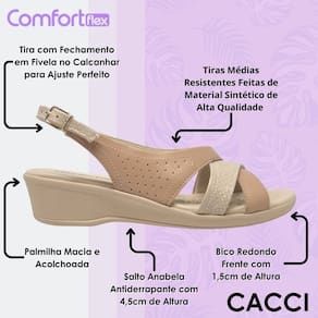A Sandália Anabela Baixa ComfortFlex é a escolha ideal para quem deseja aliar estilo e conforto no dia a dia. Delicada e feminina, ela se adapta a diferentes ocasiões, sempre garantindo o máximo de bem-estar e modernidade.
