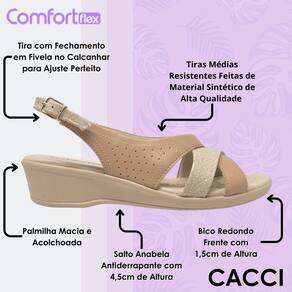 A Sandália Anabela Baixa ComfortFlex é a escolha ideal para quem deseja aliar estilo e conforto no dia a dia. Delicada e feminina, ela se adapta a diferentes ocasiões, sempre garantindo o máximo de bem-estar e modernidade.