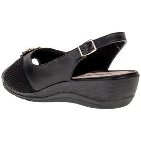 Conforto Elevado com a incrível Sandália Feminina Anabela ComfortFlex. Confeccionada em materiais resistentes e de alta qualidade, forrado em tecido têxtil e fechamento por fivela no tornozelo. A palmilha é em PU e o solado em borracha com salto Anabela de quatro centímetros de altura.