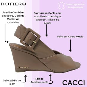 O ajuste lateral facilita o calce e proporciona encaixe perfeito aos pés, mantendo o modelo estável durante o uso. Com estilo versátil, ela combina facilmente com vestidos, saias e calças, compondo looks sofisticados sem abrir mão do conforto. A Sandália Bottero Anabela é ideal para mulheres que prezam por bem-estar, elegância e praticidade no dia a dia, sendo uma opção atemporal e indispensável no guarda-roupa.