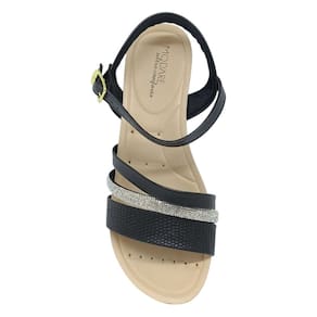 Eleve seu estilo com o brilho e o conforto da Sandália Feminina Anabela Média da Modare!