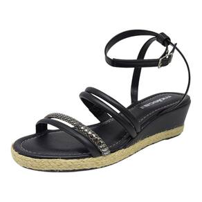 Sandália Feminina Anabela Média Conforto Brilho Corda Moleca - 39 - Preto
