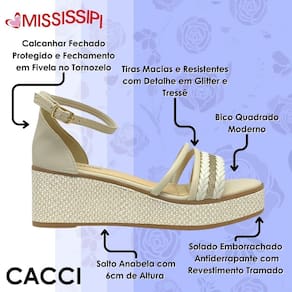 A nova Sandália Feminina Anabela Tramada Média da Mississipi é a escolha ideal para quem deseja adicionar sofisticação e conforto ao visual. Seu design moderno, com detalhes em glitter e tressê, é perfeito para quem busca elegância com um toque de brilho. O salto anabela de 6 cm oferece conforto e estabilidade, enquanto o calcanhar fechado e o fechamento prático garantem um ajuste perfeito. Versátil e estilosa, ela é a opção ideal para diversas ocasiões!