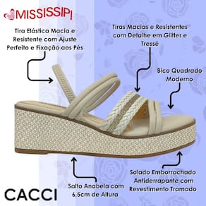 Realce seu estilo com a elegância moderna da Sandália Feminina Anabela Média Tramada da Mississipi. Ideal para acompanhar seus melhores momentos com charme e conforto.