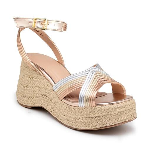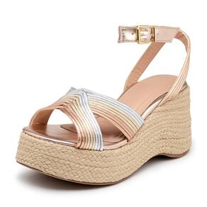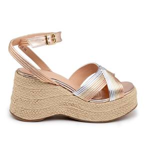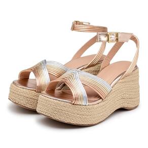 Elegância e conforto se encontram na Sandália Anabela. Confeccionada em napa metalizada com solado em borracha e salto alto em juta, que proporciona uma estética sofisticada. Ideal para ocasiões especiais ou para o dia a dia .